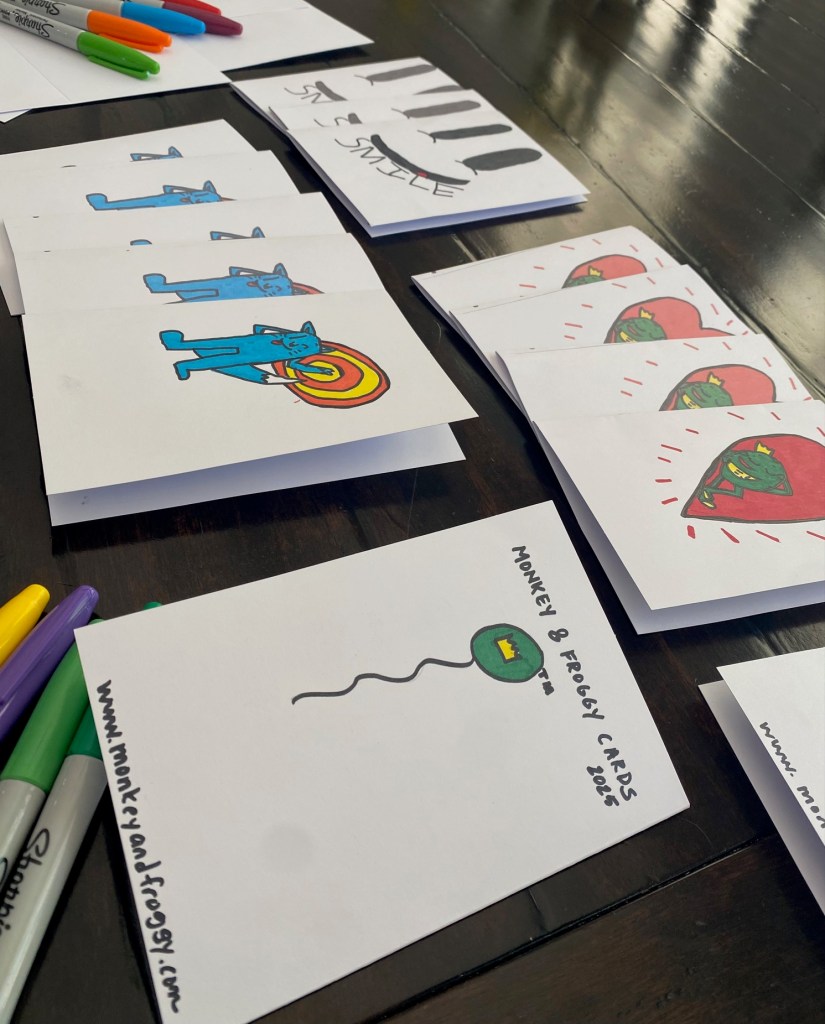Monkey & Froggy Cards! Perfect for any occasion! My cards are drawn by hand with no digital images.